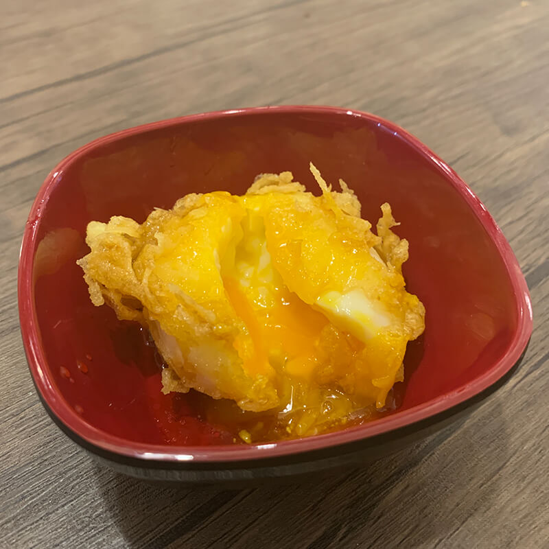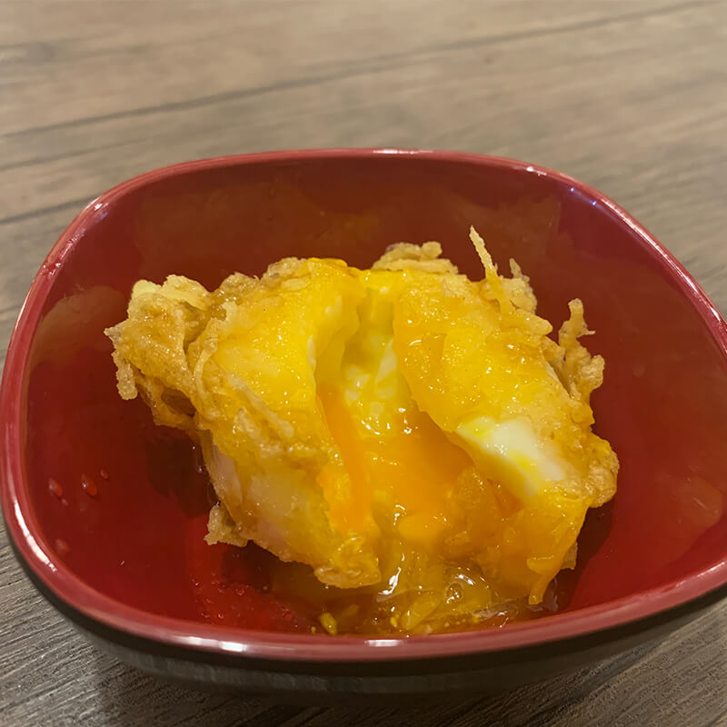 Tamago no Tempura ini dibuat dari telur rebus setengah matang berlapiskan tepung tempura yang renyah dan crispy.