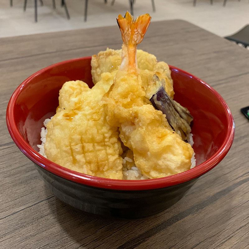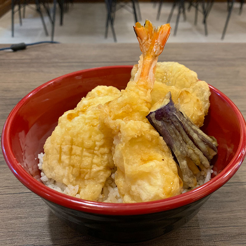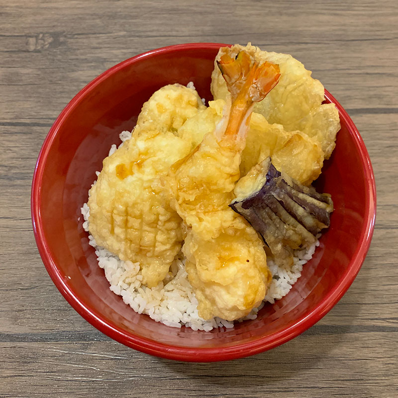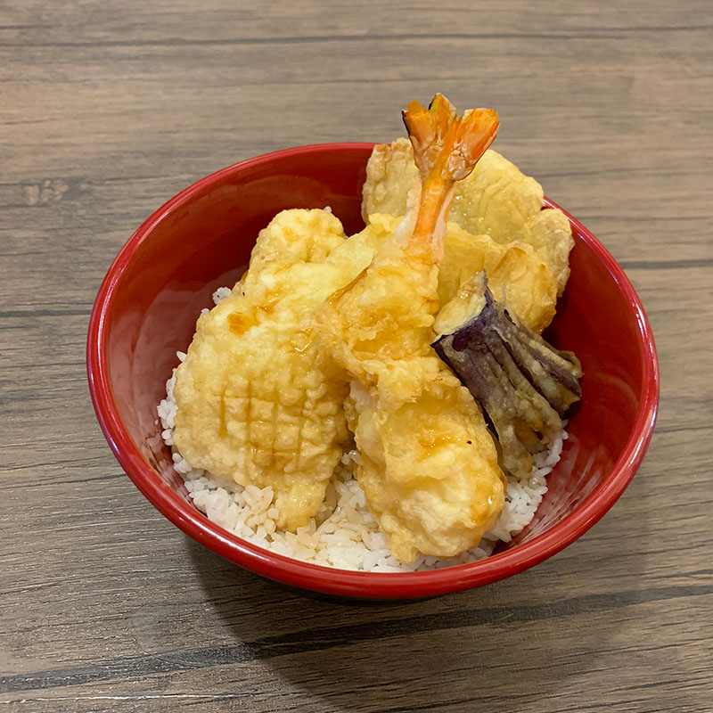 Tempuradon adalah tempura yang terdiri dari Kabocha, Terong, Bombay, Jamur Tiram, Cumi, dan Udang yang diletakan di atas Nasi dan disiram dengan Saus Tempura spesial yang manis.