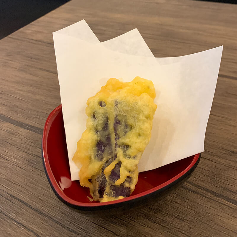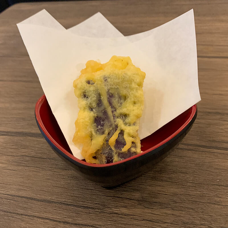 Megumi Resto menyediakan aneka tempura yang bisa jadi pilihan buat kamu yang suka Tempura. Seperti Nasu no Tempura ini yang dibuat dari Terong berlapis tepung tempura yang renyah dan disajikan dengan Tempura Tsuyu.