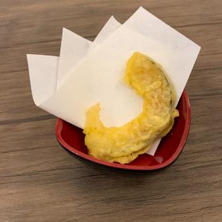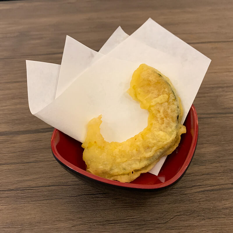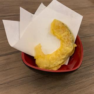 Tempura yang satu ini merupakan hasil olahan Kabocha atau Labu Jepang dilapisi tepung tempura yang renyah, lalu disajikan dengan Tempura Tsuyu.