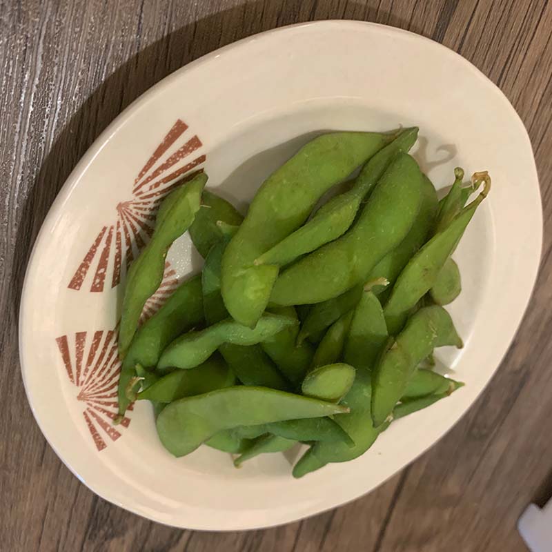 Edamame ini merupakan kedelai khas Jepang yang sudah dibumbui dan direbus, lalu disajikan hangat.